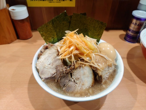 大量の肉と豚骨をとことん煮出したこってりだけど優しい味のスープに、山盛り野菜、極厚のチャーシューが自慢のお店。無料トッピングもあるのでお好みにカスタマイズが可能。店舗情報