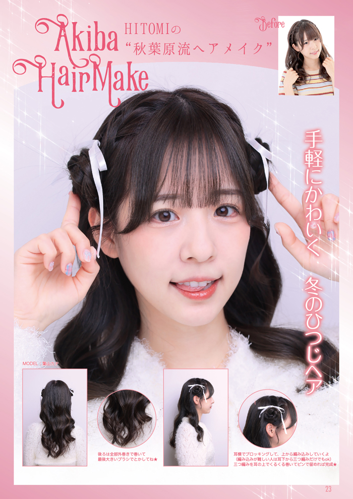 HITOMIの“秋葉原流ヘアメイク” 2026.01.09 2021.05.10 ◆2026年1ー2月号掲載(2026.1.1) ◆第57号掲載(2023.9.1) ◆第52号掲載(2022.11.1) ◆第49号掲載(2022.5.1) ◆第48号掲載(2022.3.1) ◆第44号掲載(2021.7.1) ◆第43号掲載(2021.5.1)